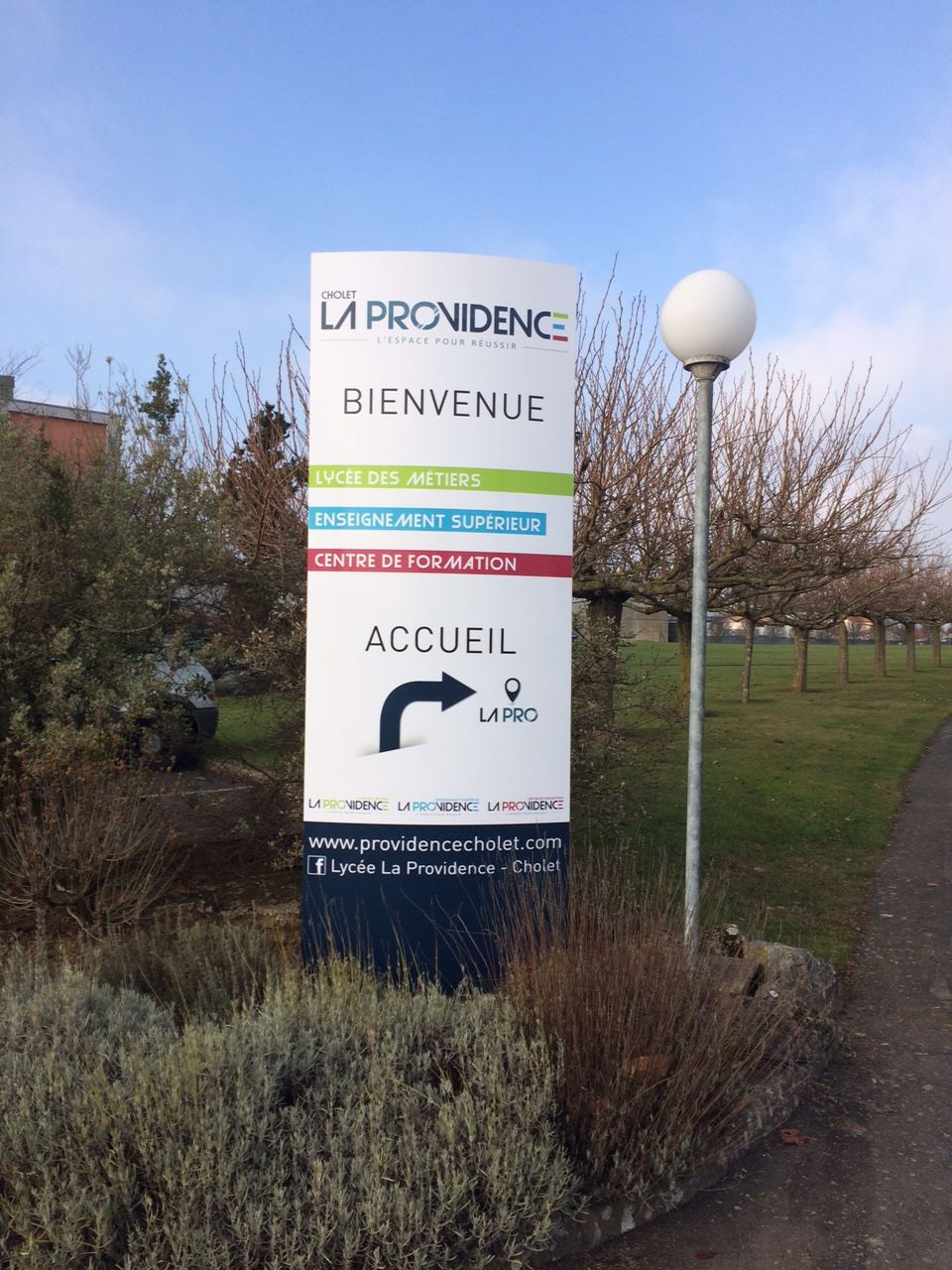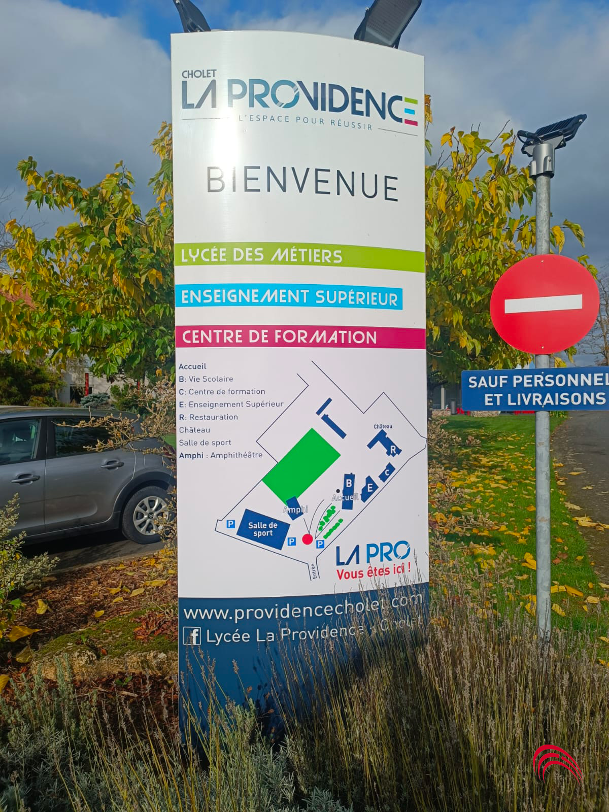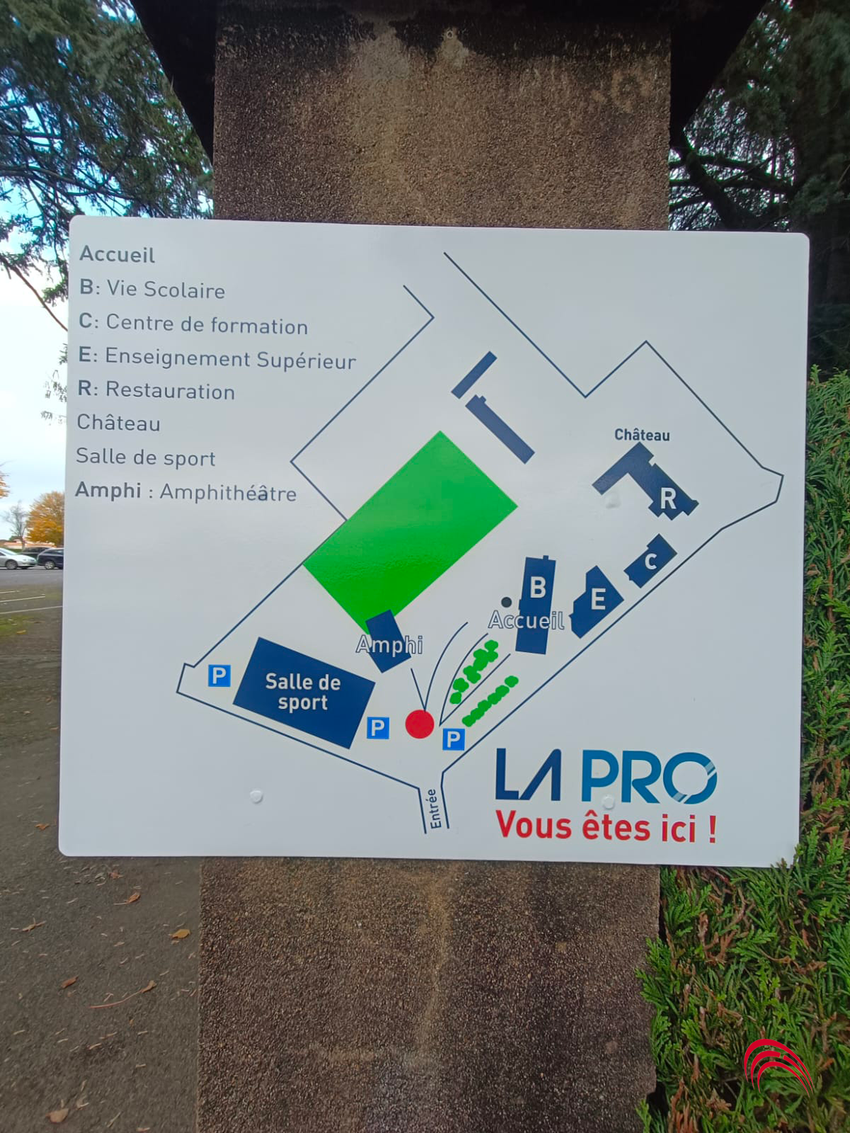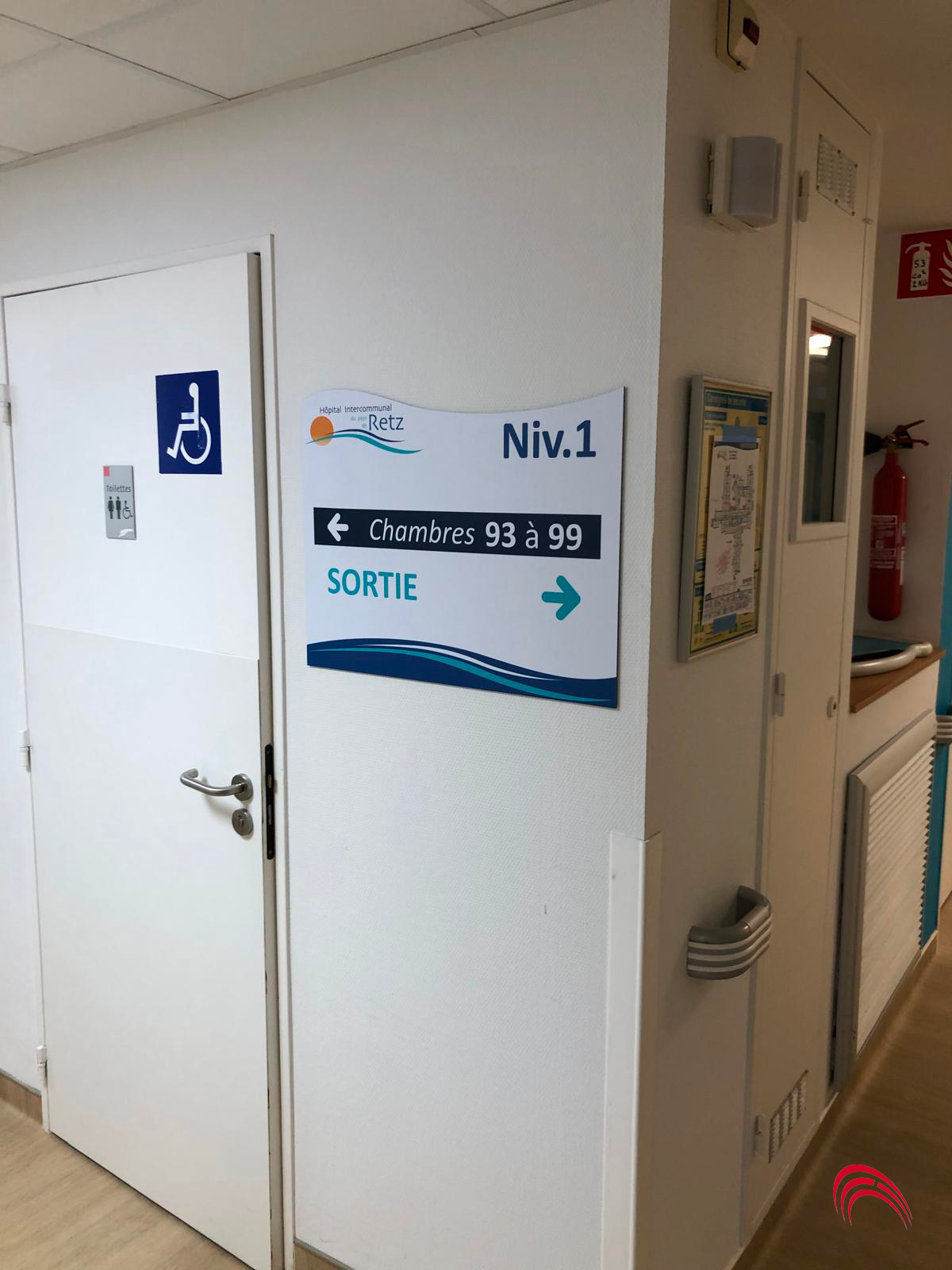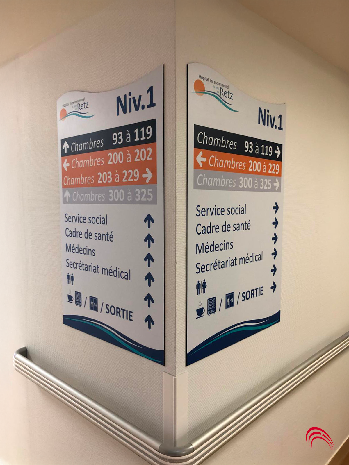 La signalétique peut être intérieure et extérieure. Elle peut prendre la forme de panneaux, de vitrophanie, de totem, de bâches, de drapeaux, de plaques gravure laser, correspondant à votre charte graphique.
